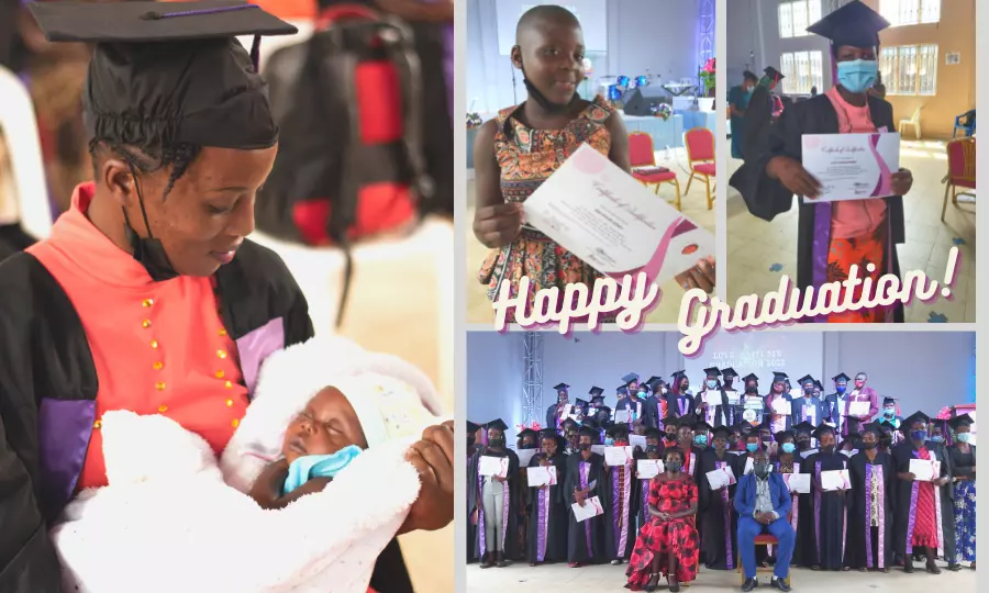 這是位於貧民窟Kabalagala的第5屆裁縫訓練中心畢業典禮,非常恭喜這些努力不放棄的學生,當天女孩及單親媽媽們帶著孩子、展示作品,對她們來說是這輩子最感到驕傲的時刻。