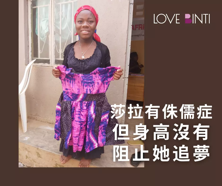 莎拉就是其中一位,她因為有侏儒症無法使用一般的裁縫車,於是訓練中心為她調整裁縫車的高度,使她可以順利學習,她沒有因為先天限制和學校關閉而被打敗;裁縫訓練中心守護她們的教育、陪伴她們追夢,邁向更好的未來。