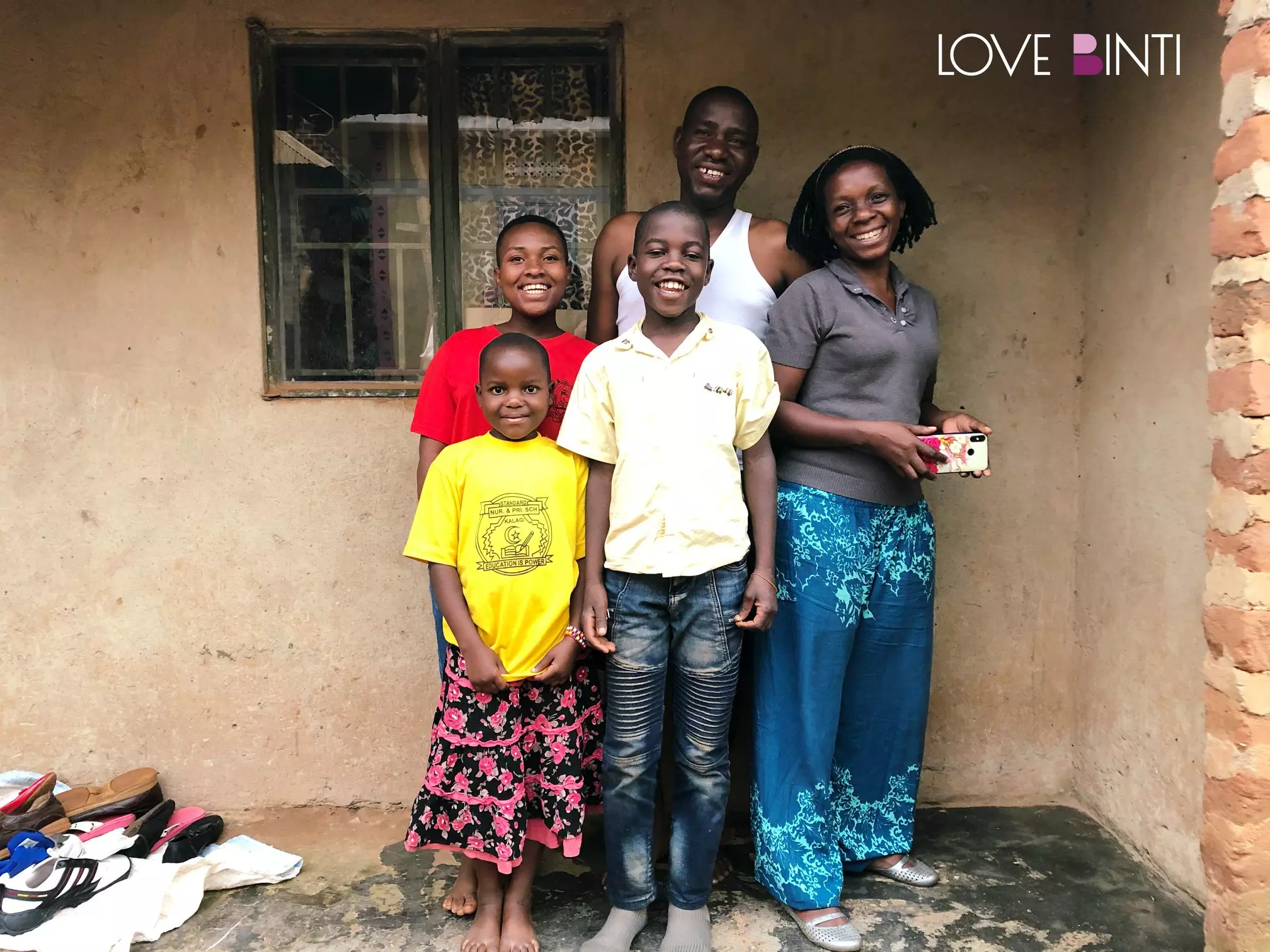 ▲圖為Agnes的阿姨一家人;Agnes(紅色衣服)受到阿姨的幫助,高興的參與了裁縫訓練課程。