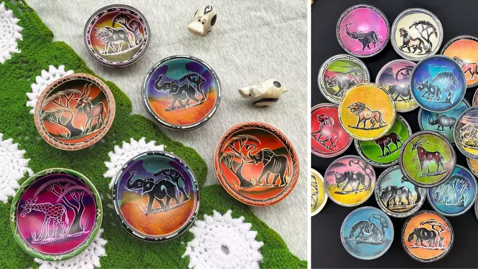 當地人完全使用手工開採、雕刻塑形、染色。每一個工藝家會專精在一至兩種肥皂石藝品的製作。以非洲大草原為背景,繪上蹬羚、大象、長頸鹿等等的動物。手工藝品的收入,幫助肥皂石礦場旁的村落邁向更好的生活。