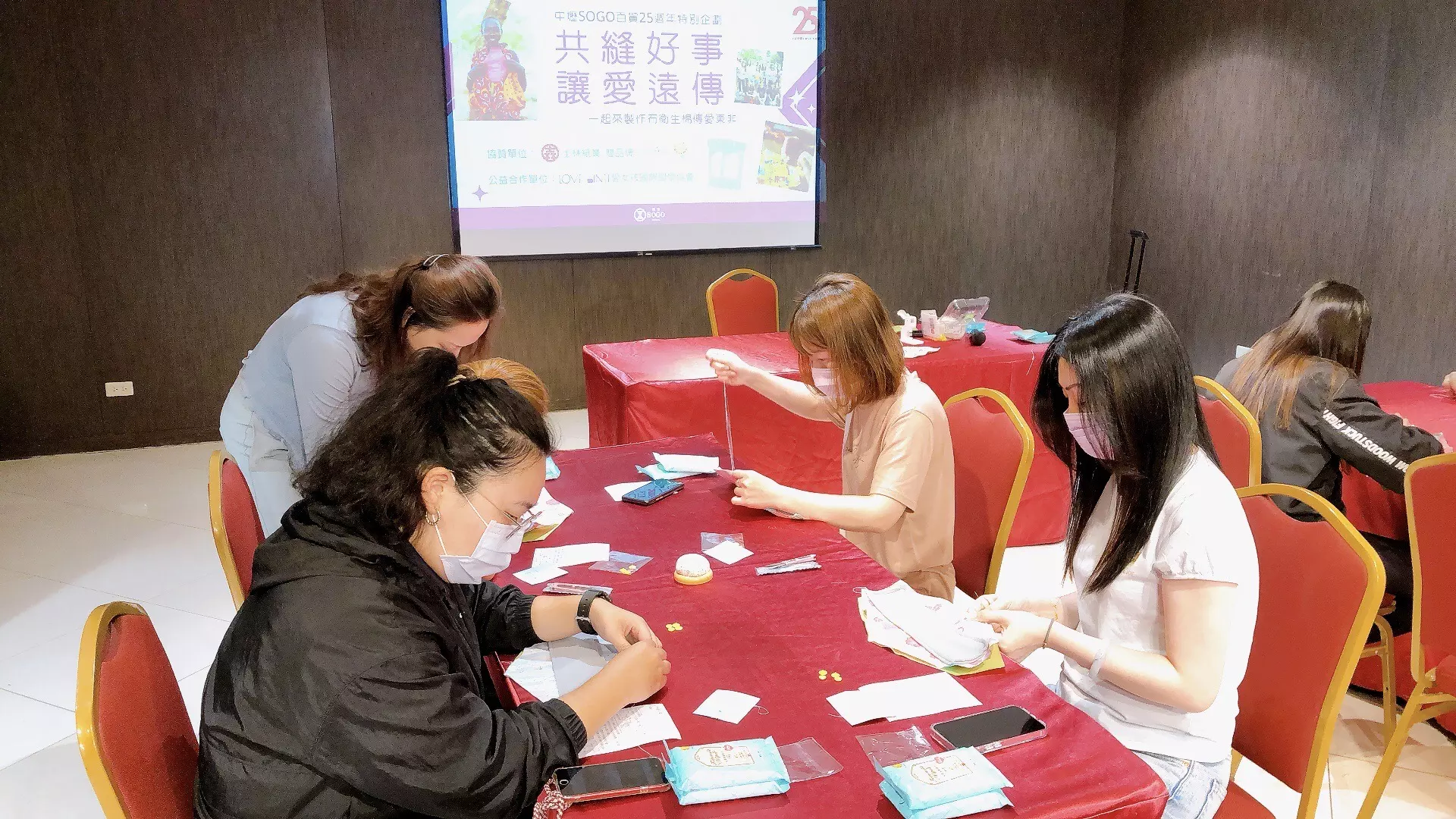 中壢SOGO 為實踐「與時俱進、友善共好, 為社會大眾提供全方位時尚生活體驗的零售標竿企業」的願景,一起來推動公益回饋社會!「共縫好事 讓愛遠傳」配合5/28世界月經日,邀請員工及顧客一同手縫布衛生棉,幫助東非的婦女提升經期的健康與幸福。